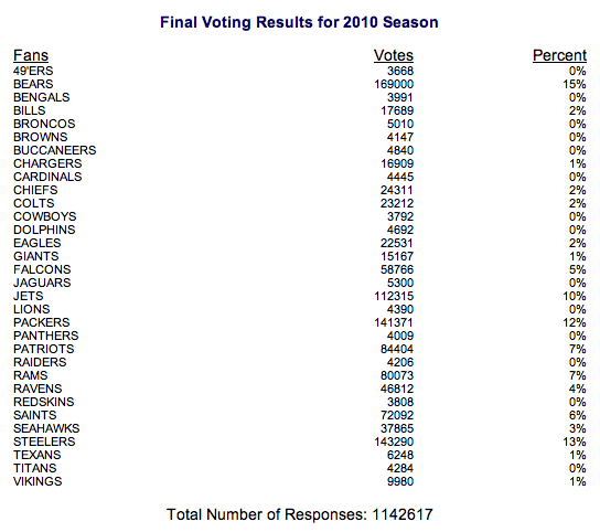Bears Fans Cast The Most Votes In The 2010 Competition!